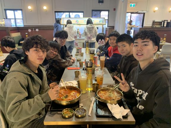 When we arrived at Big Way Hot Pot, appetites were high. Grade 12s got to grab their bowls first, followed by the 11s, 10s, and 9s. The counters were brimming with all kinds of ingredients: thinly sliced deluxe cuts of meat, fresh vegetables, fish balls, mini sausages, and all the condiments you could imagine. As students and teachers carefully built their ideal hot pot bowl, we took turns guessing how much it would cost before weighing it. Once the bowls were served one by one, tables filled with joyful smiles as classmates waited together, tasting each other's broths and laughing over who added too much spice.