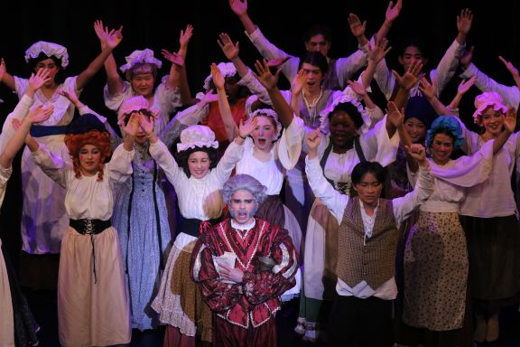 Since the initial week of auditions to the final week of dress rehearsals, the cast has spent months developing a complex and phenomenal show. This process included learning lyrics and harmonizations, figuring out how to move through choreography in poofy skirts and character shoes, as well as blocking scenes and incorporating dynamic sets and props. During these months, each cast member worked to develop their unique character, and as a whole, the cast became a close-knit team who supported one another through the challenge of putting on a musical.