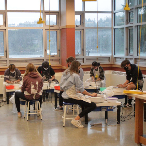 Emily W, Allard ‘22, says, “I initially joined pottery because I thought it would be cool to try. I have found it to be a really relaxing art form because the feeling of your hands in the clay is so therapeutic. It’s really great because I can express myself while at the same time getting to create functional objects! It definitely takes a lot of practice to get to a point where it feels relaxing though, don’t get me wrong.”