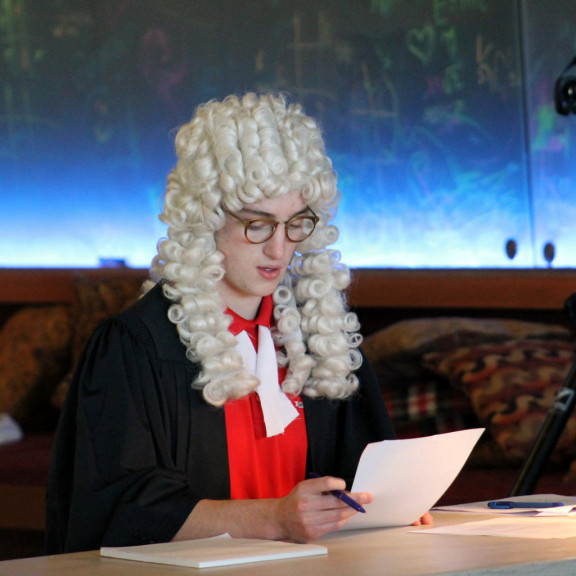His Excellency Mr. Conner C '16 was able to keep his wig on only with difficulty as some lawyers mentioned evidence that may not have actually been proven effectively, but the entire case rolled to a close, with the same outcome as the real case had back in 1991, just in time for dinner.